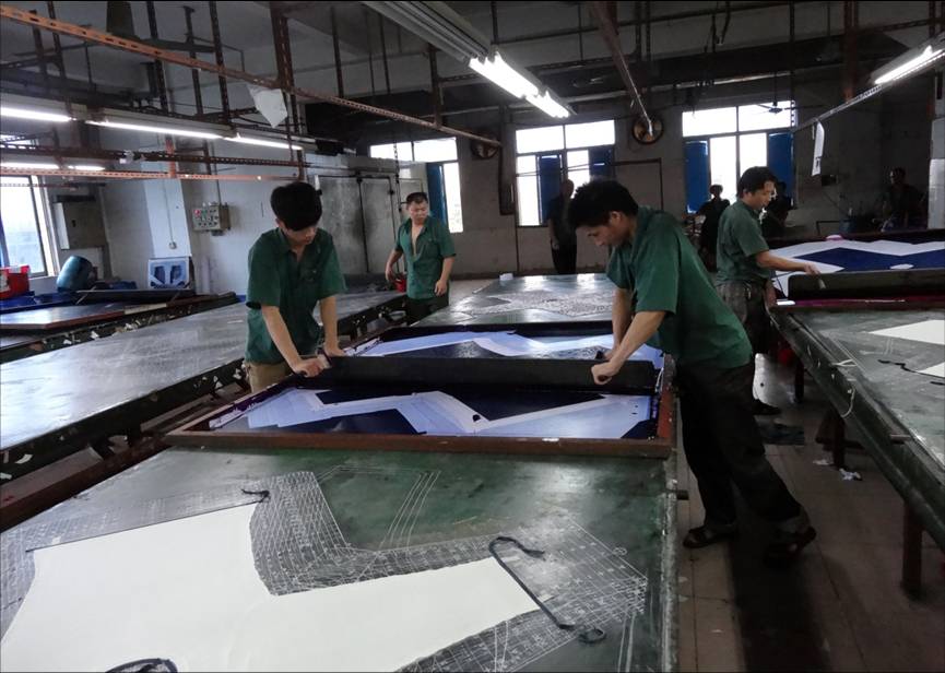 國內(nèi)傳統(tǒng)的毛衫印花企業(yè)以手工平網(wǎng)印花為主,由于印花網(wǎng)版大,人工刮印、人工抬版、人工定位等人工操作,不但刮印工人勞動(dòng)強(qiáng)度大,而且質(zhì)量不穩(wěn)定、生產(chǎn)效率低,熟練刮印工定崗難穩(wěn)定、難招工始終困擾著毛衫印花企業(yè)的發(fā)展。